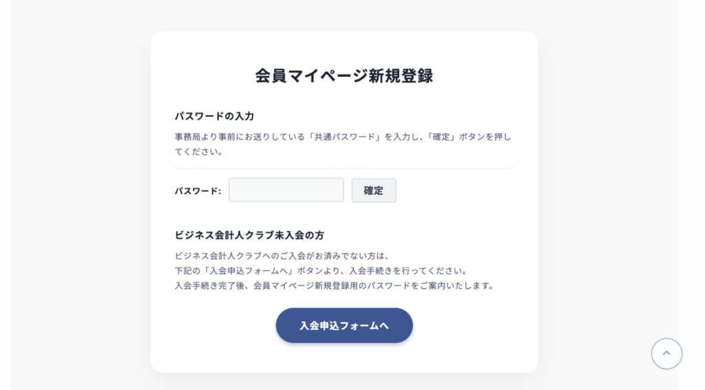 2. 未入会の方 まだ入会がお済みでない方は、画面内の「入会申込フォームへ」ボタンより、入会手続きを行ってください。