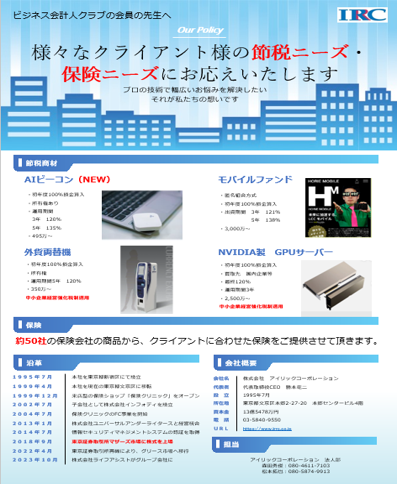 保険以外にも様々な節税商品のご案内が可能です。